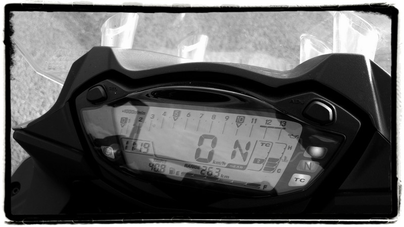 De S1000F is de tweede Suzuki die standaard is uitgerust met tractiecontrole, na de V-Strom 1000. Bij de V-Strom heb je twee tractie- en een uitstand, bij de GSX-S1000F drie plus de uit, waarbij stand 1 laat ingrijpt en stand 3 vroeg. Ik reed meestal in stand 2 en het viel me op hoe subtiel de tractiecontrole z’n werk doet. Je ziet het lampje oplichten op het dashboard, maar de tractiecontrole zelf voel je amper.