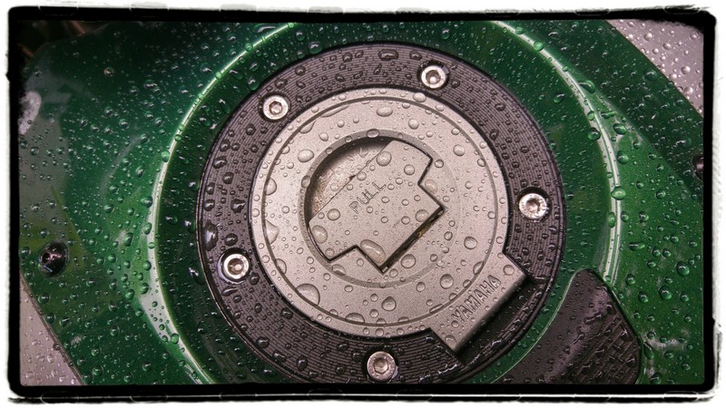 Even terug naar de teller. Die is opvallend klein maar ook opvallend afleesbaar. Snelheid duidelijk in beeld, versnellingsindicator en tankinhoud iets meer op de achtergrond, toerental in de rand en tot slot is er nog één plekje vrij waar je gemiddeld verbruik, huidig verbruik, temperatuur, omgevingstemperatuur, kilometerstand, een van de twee triptellers of de tijd kan laten verschijnen. Ik heb grotere displays gezien die minder goed vielen te ontcijferen.