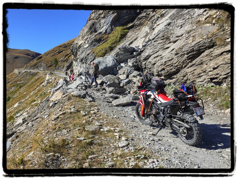 Bart neemt een kijkje en besluit: “Daar kunnen we wel over.” Hij springt op z’n Africa Twin en rijdt over de steenmassa (al moet hij daarvoor wel eerst een iets te hulpvaardige Duitser bedanken voor onnodige diensten). Voorzichtig en gecontroleerd, want links gaapt een serieuze afgrond. Niemand kan geloven dat we hier allemaal over moeten of kunnen. “Daar begin ik niet aan. Ik rij wel terug. Ik ben niet zot,” hoor ik uit diverse monden, inclusief de mijne.