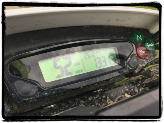 De display is miniem en bevat amper info: snelheid, tijd en twee triptellers. Bij stilstand krijg je er de km-stand, gemiddelde snelheid en ART (oftewel het aangenomen aantal draaiuren) bij. Geen versnellingsindicator, geen toerenteller. Nu ja, geen ramp. Want eens je op onverhard rijdt en je recht op de voetsteunen staat, heb je toch geen oog meer voor je display en rij je volledig op gevoel.