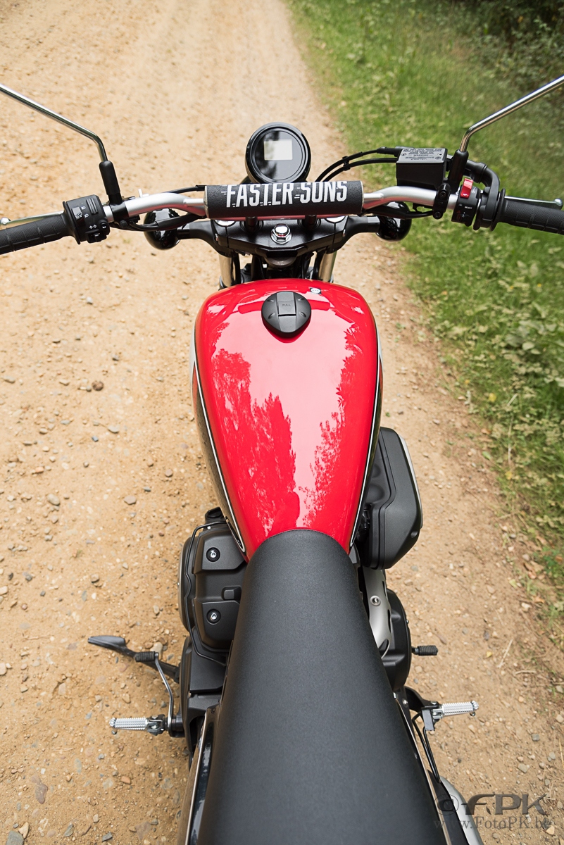 De SCR950 zit comfortabel en voelt met z’n 54,3 pk en 79,5 Nm totaal niet overweldigend aan. Hij is ideaal om gezapig te cruisen over binnenwegen. Niet dat het een tam geval is, maar sprintrecords zal je niet breken. Gewoon genieten van de omgeving en de heerlijke soundtrack, lekker take it easy, daarvoor is hij gemaakt.