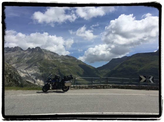 Van daaruit naar de Furka- en Grimselpas. Het aandeel haarspeldbochten neemt gestaag toe. Zo raakt de bochtentechniek snel afgestoft. Wat al snel een beetje tegensteekt: de drukte. Erg veel motards en auto’s op de baan. Het is haast onmogelijk om te rijden op je eigen tempo of zonder achterligger in je gat.