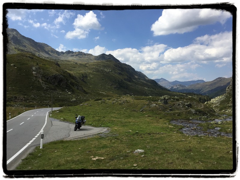 Ook de Splügenpas neemt je in het ootje. Weer denk je “oh, deze pas is een makkie”. Tot je na wat flauwe bochten ineens wél hard met je stuur moet gooien. Het scenario van de San Bernardino herhaalt zich. Schots aandoende hoogvlakte en het venijn in de staart: een erg spannende slotafdaling. Blinde haarspeldbochten in een tunnel met één rijstrook voor de twee rijrichtingen: da’s even opletten.