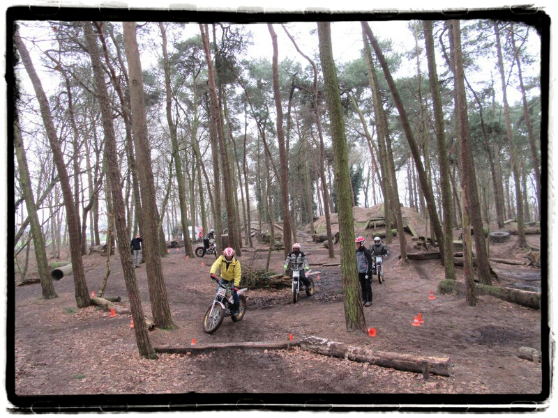 Vijf Montesa trialbrommers stonden ons netjes op een rij op te wachten. Viertaktjes, van 250 en 260 cc. We waren uiteindelijk met z’n tienen, dat werd dus afwisselend de oefeningen doen.