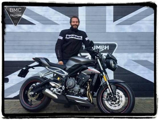 Enkele maanden geleden kwam daar na een uit de hand gelopen testrit een Triumph Street Triple 765 RS bij. Dat ding verkoopt zichzelf. Zalig speelgoed, zoals je zelf weet.