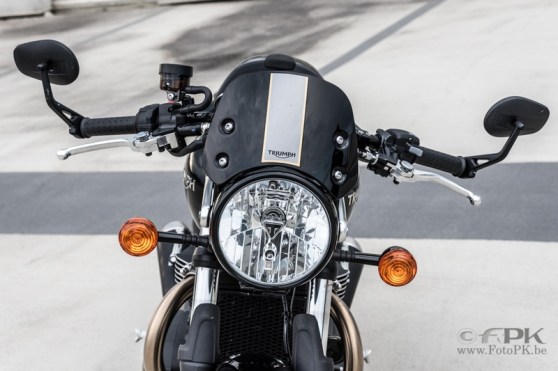 De rijhouding is uiteraard sportief, maar armen en benen lijden daar vrij weinig onder. Het zadel is comfortabel, terwijl het flyscreen – zoals verwacht – enkel punten scoort op vlak van esthetiek. Een uurtje aan 140 over de Autobahn ga je vrijwel zeker in je nek voelen. Nee, doe dan maar ritjes onder kerktorens en van terrasje naar terrasje. Dat kan overigens met twee want die duo-voetsteuntjes waren geen vergetelheid van het Triumph team: het afdekkapje kan eraf en verbergt een tweepersoonszadel.