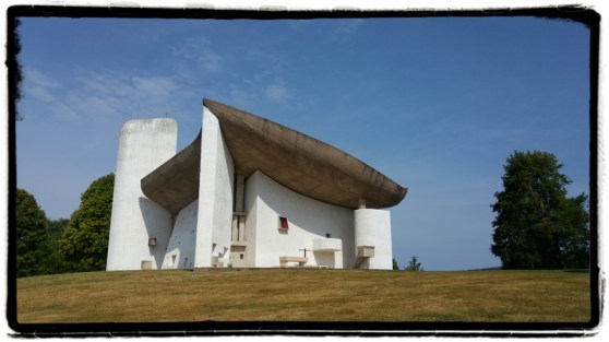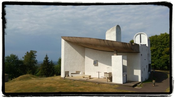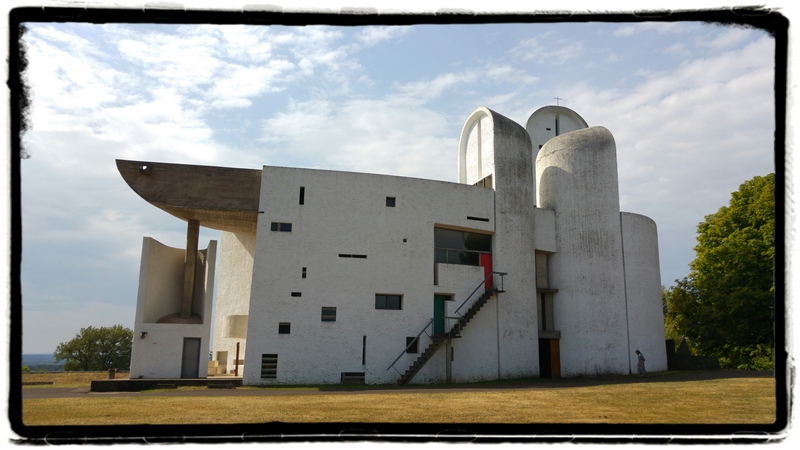 De weersvoorspellingen beloofden voor vandaag plaatselijke regen- en onweersbuien, maar toen ik de motor stond te pakken scheen de zon en hingen er maar een paar wolkjes in de lucht. Dus ik waagde het erop. Ik koos voor een portie architectuur: de Chapelle Notre-Dame-Du-Haut in Ronchamp, ontworpen door Le Corbusier.