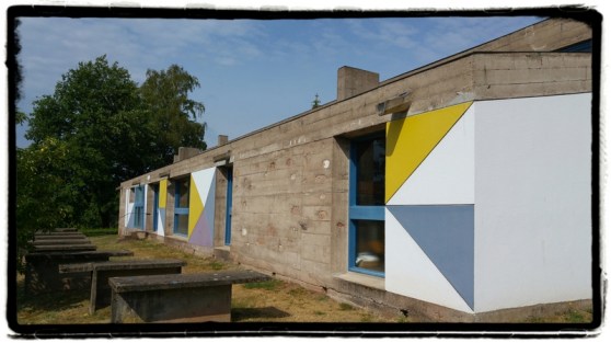 Na het bezoek aan de kapel dreef een stevige wind een pak wolken voor de zon. Dju, gingen die weersvoorspellingen toch uitkomen? En ja hoor, ik had Le Corbusier nog niet uitgewuifd of de eerste spatjes tikten op m’n helm.