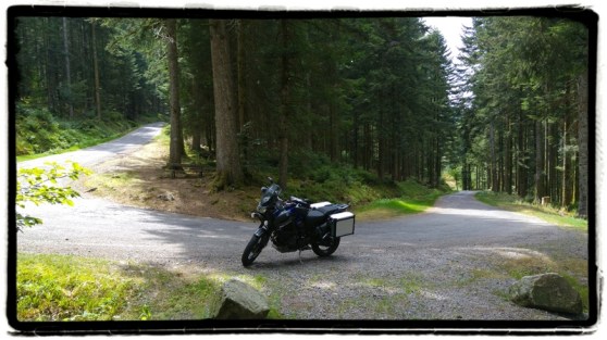 Ook nu weer leidde de gps me soms langs nogal slechte wegen. Maar het decor was des te mooier. Prachtige bossen, geen mens te bespeuren. Alleen is het wegdek niet erg uitnodigend voor pakweg je chopper of racer.
