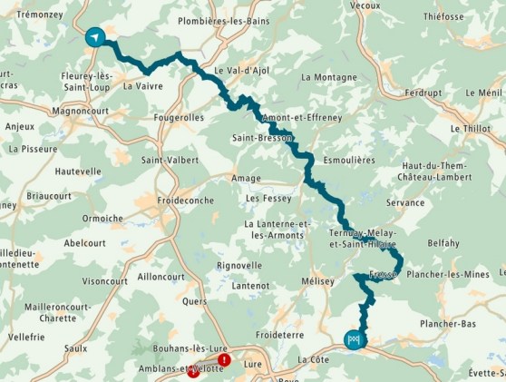 Voor dag 3 had ik opnieuw een route van La Mouche gedownload, maar de route van dag 2 had me aan het denken gezet. De route van vandaag was korter dan die van gisteren, maar voor mij hoefde het – na de ervaring van gisteren – zeker niet korter te zijn. En ik vreesde ook een beetje opnieuw op de grotere D-wegen terecht te komen.