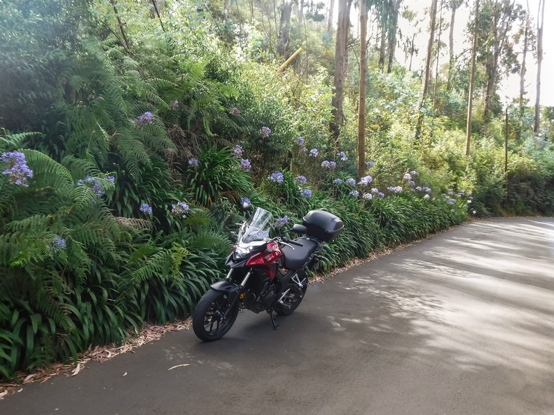 Dat huren doe ik bij 4&2 Wheels Rent. Daniel Pita baat in Funchal een verhuurwinkel uit met scooters, auto’s en moto’s. Hij biedt naast maxiscooters de keuze uit enkele Benelli’s BN302 en een paar Honda’s CB500X. Ik kies die laatste. Een moto huren kan enkel voor 2 dagen en dus betaal ik de prijs van twee voor één: 85 euro met een waarborg van 250 euro. Snel papierwerk afhandelen, helm uitkiezen, en omstreeks half tien kan ik vertrekken.
