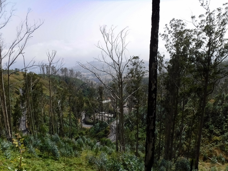 Voorbij de afslag naar Pico de Areerio houdt het naaldbos plots op: enkele jaren geleden verteerde een grote brand hier vele hectaren bos en zelfs verschillende huizen. Het opruimen is nog volop aan de gang. Via Monte (een heuvel uitkijkend over Funchal en place to be voor menig volksfeest) daal ik traag – en voor het eerst tussen redelijk druk verkeer – weer de stad in.