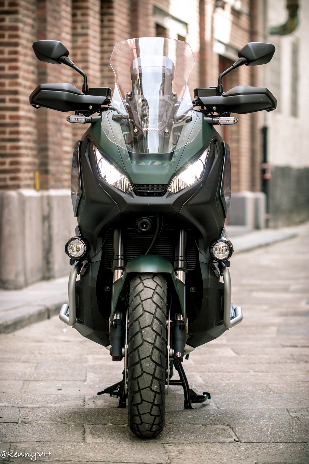 Honda deelt de X-ADV in bij zijn adventure-modellen. Het doet dat door de X-ADV enkele allroad-eigenschappen mee te geven: een groter voorwiel dan bij klassieke scooters, instelbare vering voor en achter, uitschakelbare tractiecontrole, handbescherming en een mooi digitaal dashboard in de stijl van een CRF450 Rallye. Het geheel ziet er in ieder geval geslaagd uit, met zijn stoere “armoured” kleurenstelling en geblokte Bridgestone banden.