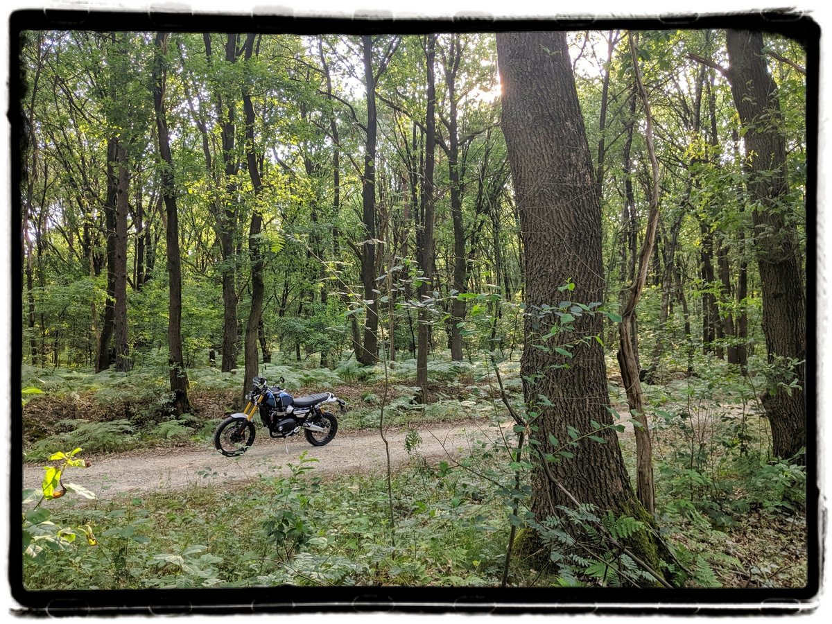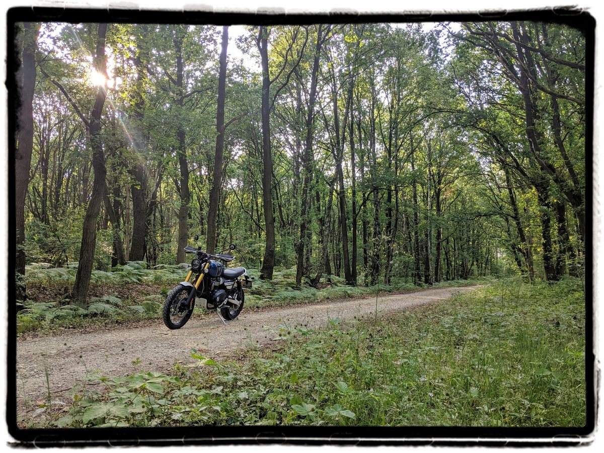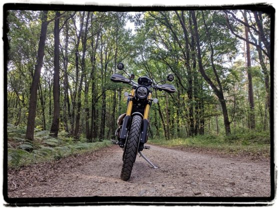 De positie staand op de voetsteuntjes is goed. De knieën klemmen de motor zonder moeite, het stuur staat zo dat je niet voorover moet buigen. Als je het een beetje voorover kantelt, kan je rechtstaand makkelijker aan de gas- en ontkoppelingshendels, en sta je nog iets rechter. De balans zit goed en hoewel ik ‘m enkel op een paar simpele gravelbaantjes heb getest, voelde de Scrambler aan als een motor waarmee je wel wat aankan. Als je in je achterhoofd houdt dat je met ruim 200 kg onderweg bent tenminste.
