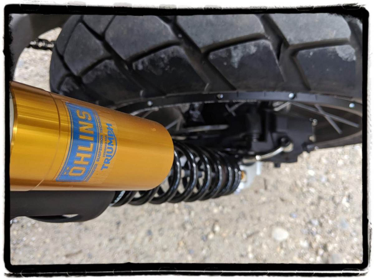 Achterwielophanging: Volledig instelbare Ohlins twin shocks met piggy back reservoir, 250mm veerweg