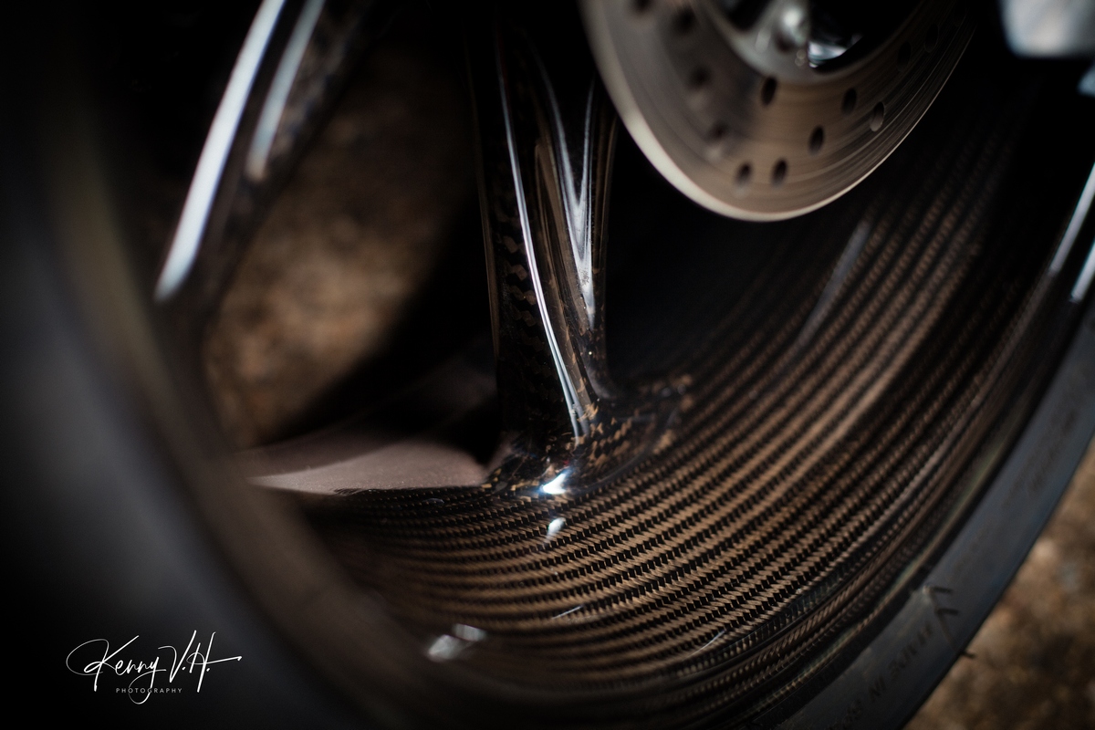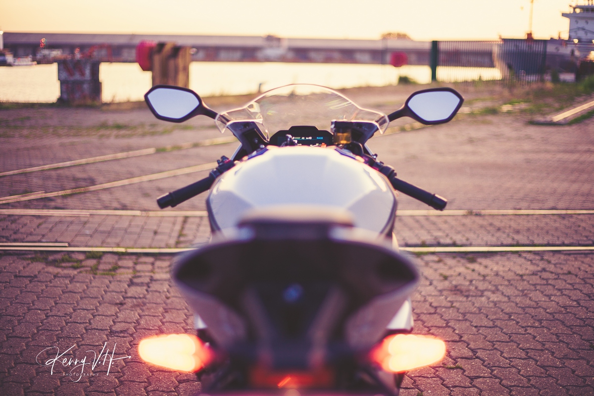 De avond voor ik de RR weer terugbreng bekijk ik hem nog eens goed van dichtbij. Die sportkleuren staan hem geweldig. De carbonwielen zijn echt vet. De geborstelde uitlaat vind ik een understatement voor een motor van dit kaliber. De schele lichten van zijn voorganger zijn vervangen door twee priemende ogen. Het achterlicht en stoplicht zijn prachtig verwerkt in de richtingaanwijzers , een briljante vondst. Maar wie heeft die pinkers in de spiegels in godsnaam zo groot gemaakt?