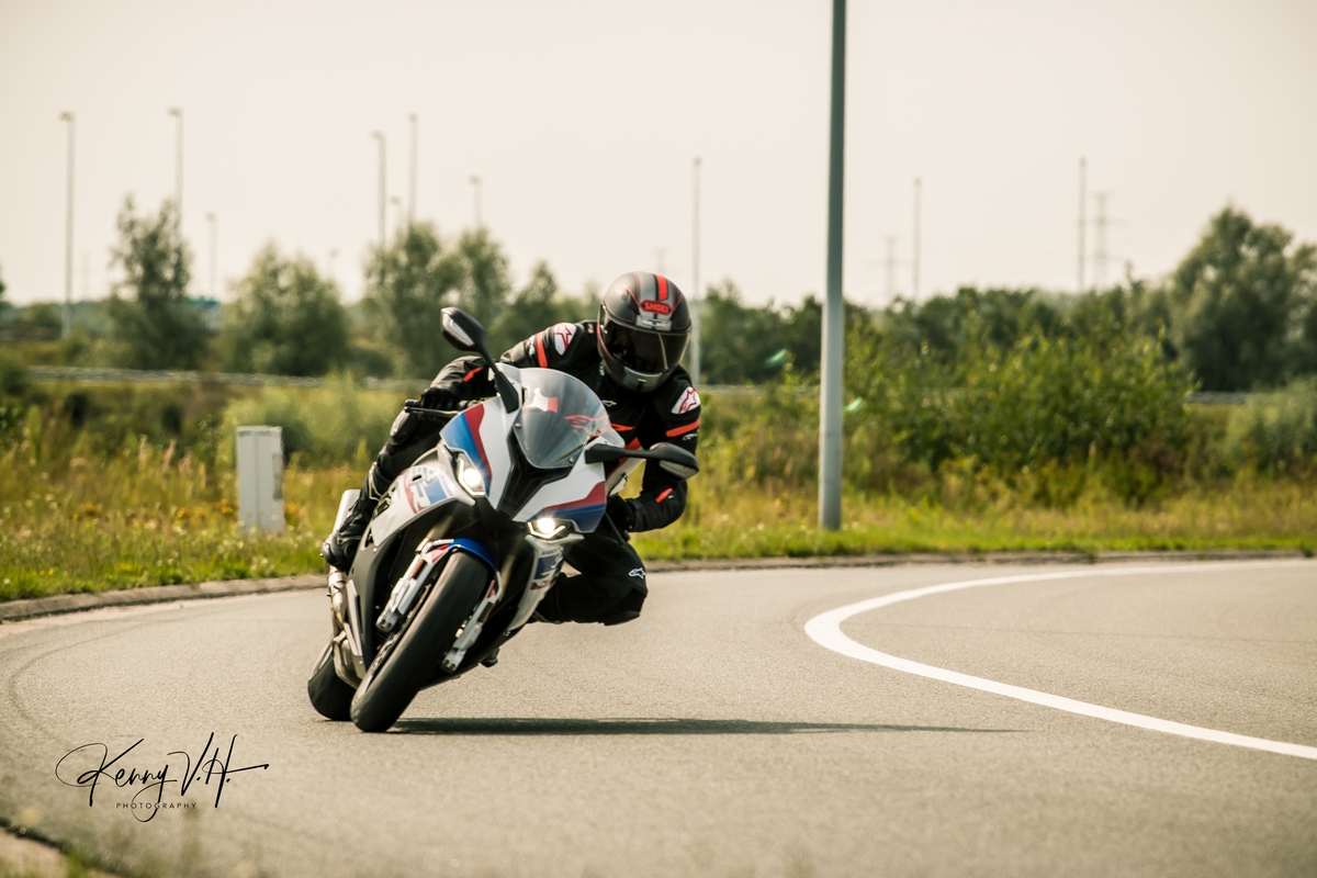 We spoelen terug naar een paar uren daarvoor. Bij BMW staat de nieuwe S 1000 RR me op te wachten. Getooid in de prachtige Motorsport-kleuren die je enkel met het optionele M-pack kan krijgen. Hij staat op superlichte M-carbon wielen en heeft een lichtere M-batterij. Een geborduurde M tooit het zadel. Om maar te zeggen dat dit de sportiefste RR is die je kan kopen. Bij de auto’s van het Bayerische merk is die M mythisch, en vanaf nu ook terug te vinden bij de Motorräder.
