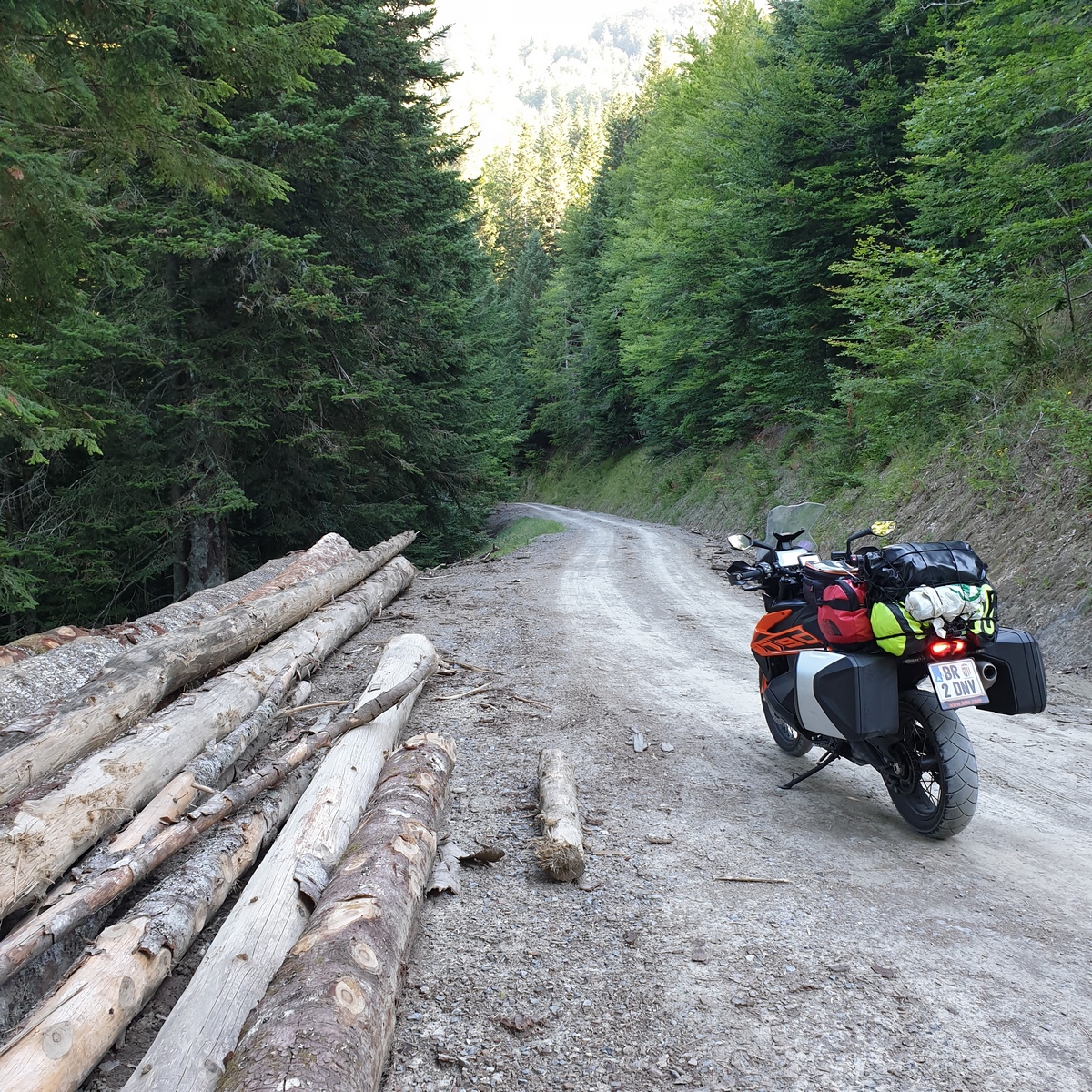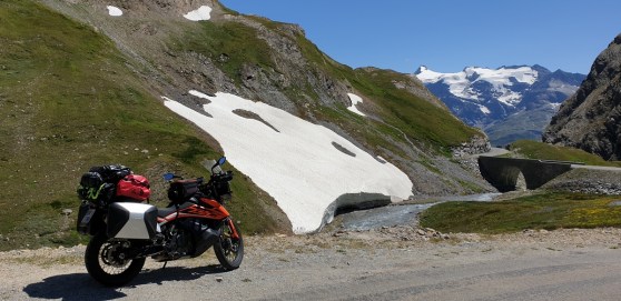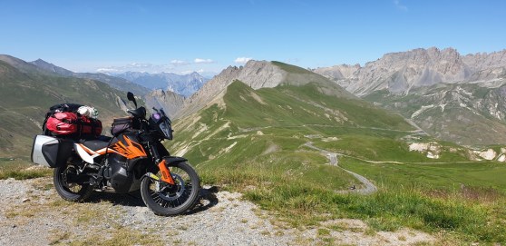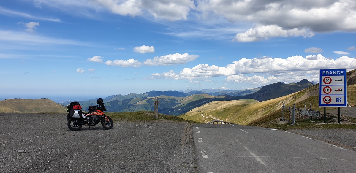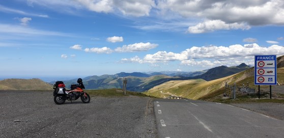 Na de Dolomieten rij ik alleen verder. Vanaf nu zal ik ook geen twee keer meer op dezelfde plaats slapen en dus moeten de Alpen en Pyreneeën met alle bagage op de motor doorkruist worden. Dat gaat moeiteloos zodat ik geen enkele keer de behoefte heb om de vering aan te passen. Gelukkig maar, want met uitzondering van de veervoorspanning achter kan dat op deze “gewone” 790 Adventure niet (het kenplaatje spreekt overigens van “790 Adventure S”). Voor volledig instelbaar spul moet je bij de 790 Adventure R zijn.
