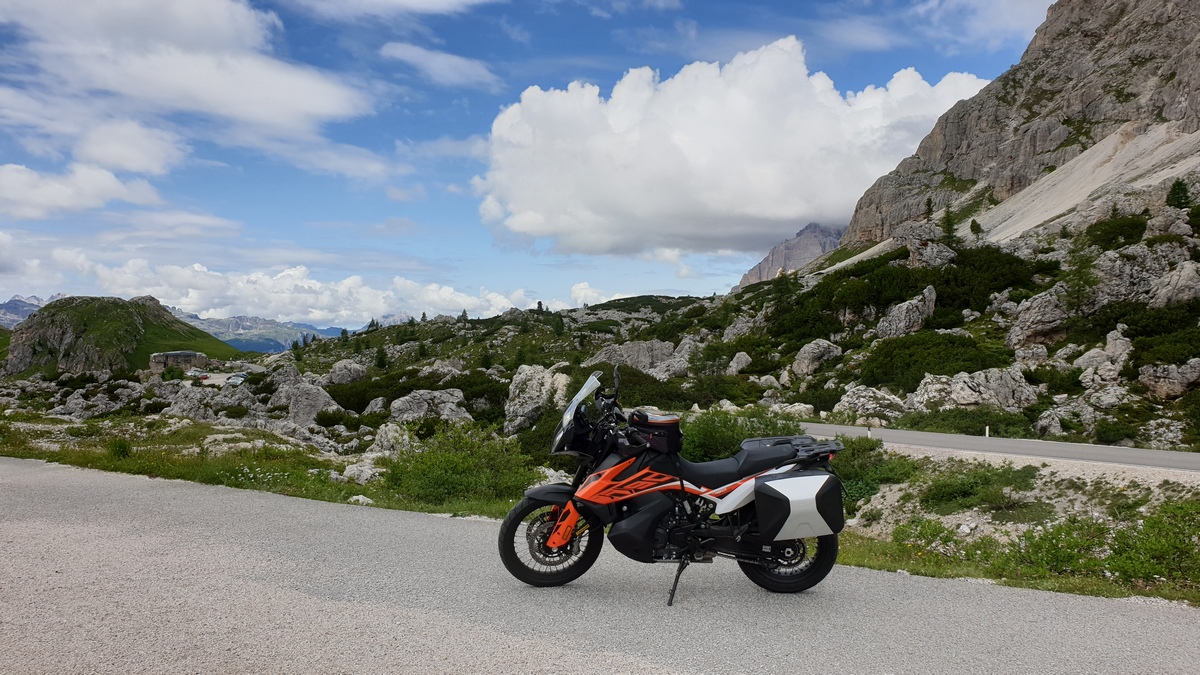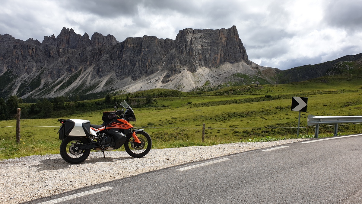 Tijdens drie dagen passen pikken in de Dolomieten bewijst de 790 Adventure dat hij een echte rijdersmotor is. Hoe meer bochten, hoe hoger de snelheid en hoe vaker de ondergrond hem uitdaagt, hoe liever hij het heeft.