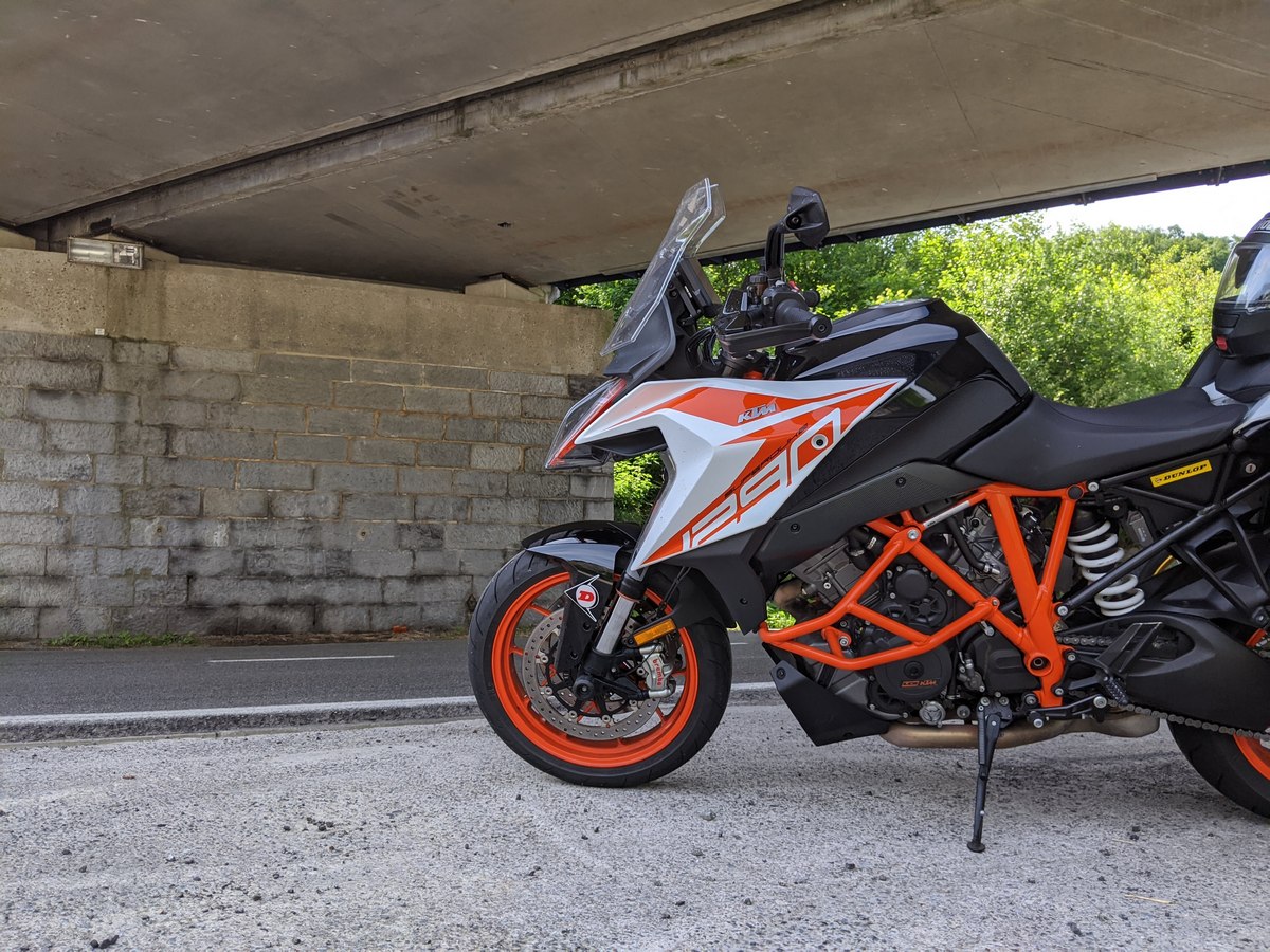 Het 2020-model van de GT is nog gebaseerd op de vorige generatie van de Super Duke. Van het originele, knotsgekke blok werd amper iets afgeroomd en blijven 175 paarden en 141 Newtonmeters over. Meer dan genoeg om van de GT een echte raket te maken. Een raket om mee te reizen in stijl. Hoewel het Kiska ontwerp niet ieders meug is, valt de GT op door de agressieve koplampen die geflankeerd worden door de in de tank geïntegreerde LED-bochtenverlichting en -pinkers. Ook de brede schouders en slanke heupen vallen op, en de koffers passen wonderwel in het geheel. Een meer dan geslaagde designmix waarop ik geregeld werd aangesproken tijdens een weekje toeren in eigen land.