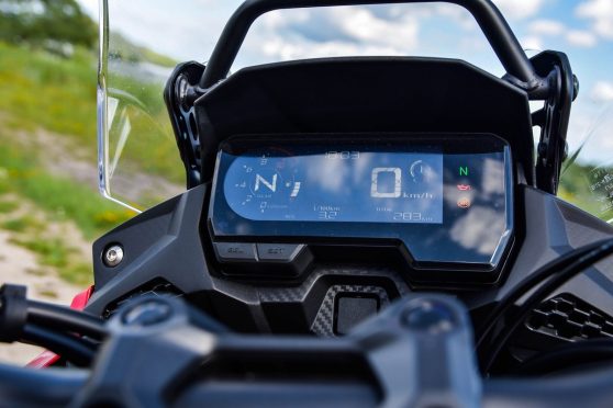 Het windscherm kan je enkel verstellen met een inbussleutel. Een pluspunt is dan weer dat het windscherm standaard een handige montagebeugel heeft, waarop je een gps of smartphone kan bevestigen. Het LCD-scherm ziet er fraai uit, goed afleesbaar en voorzien van onder andere een snelheidsmeter, versnellingsindicator, benzinemeter, triptellers en een klok. De toerenteller mocht voor mij wat groter.
