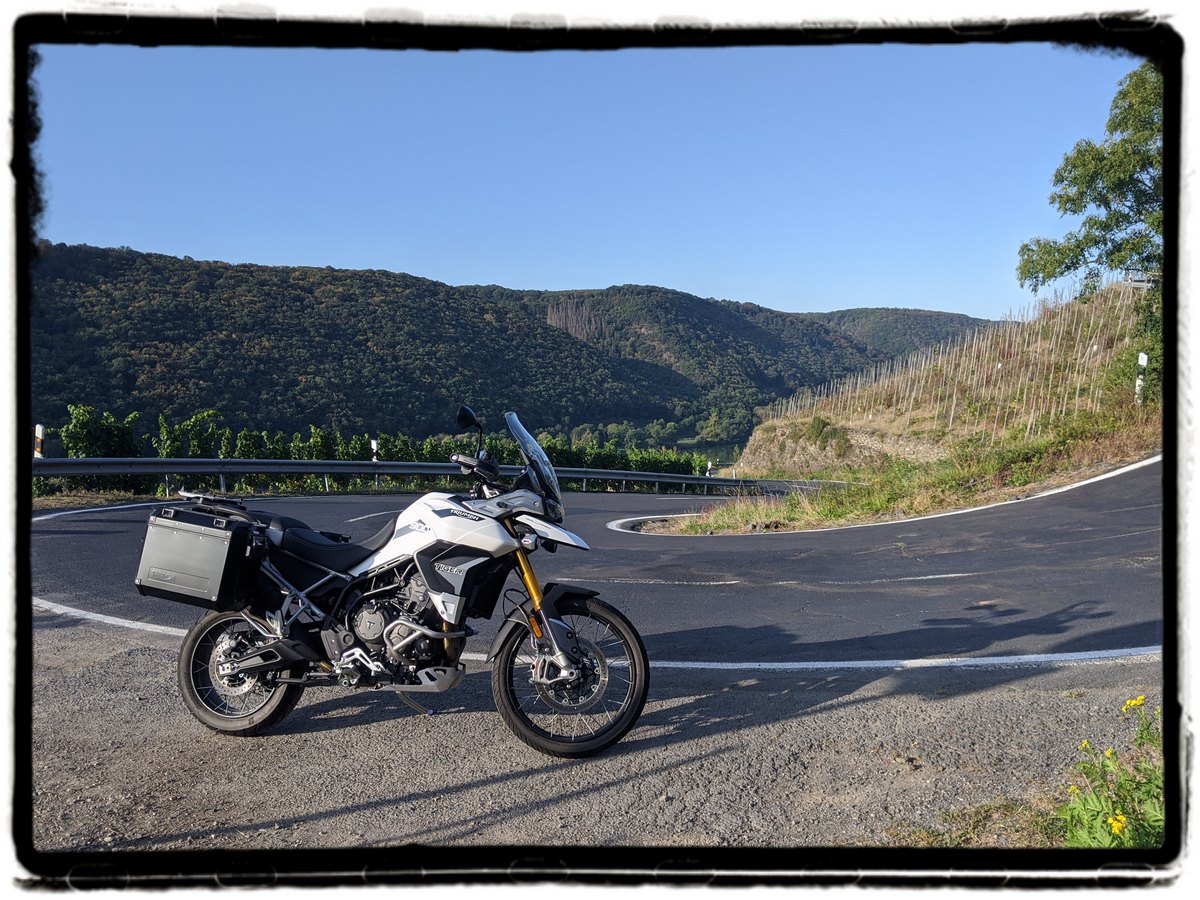 Dag twee in de Moezel start ik met de ingaande demping vooraan en de voorspanning achteraan strakker te zetten. Dat doet deugd. De Tiger reageert minder woelig op stuurcommando’s. Lijnen houdt hij makkelijker aan en ook de dramaqueen bij hard remmen is getemd. Ineens voel ik wel kriebels bij sportief rijden. Alleen weet de achterkant nog steeds moeilijk weet met slecht wegdek.