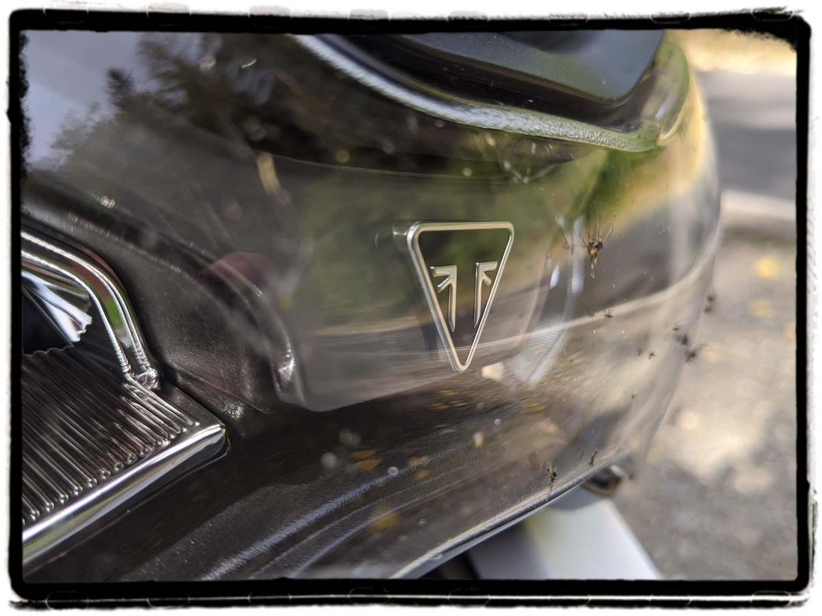 Voor we afsluiten, nog twee zaken: z’n geluid en z’n snelheidsmeter. Het typische, hoog zoemende triple-geluid is er nog steeds, maar wordt nu aangevuld (en in sommige situaties zelfs overstemd) door een diepe brom. Geeft de Tiger een sportievere sound.