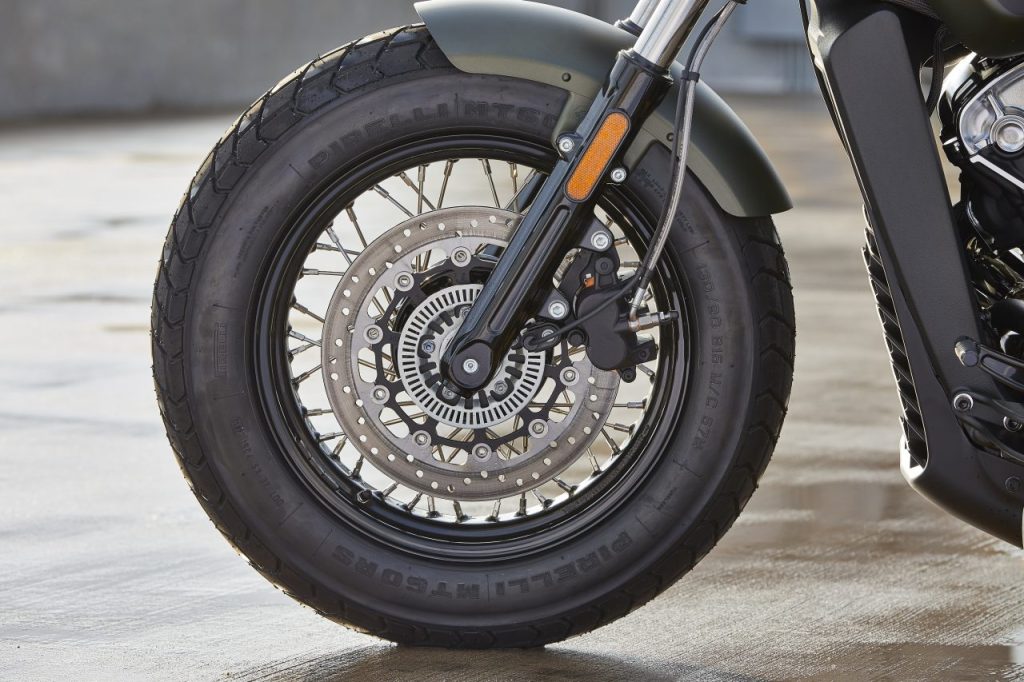 De versnellingsbak is boterzacht en de koppeling licht. Ideaal in de urban omgeving waar deze bobber zich thuis voelt. Met een 298 mm enkele schijfrem vooraan moet ik vaak de achterste rem erbij nemen omdat de bijtkracht net niet genoeg is. Verontrustend? Nee. Wel iets om rekening mee te houden. Ik had liever een extra schijf gezien om meer bite te krijgen. Maar Indian koos voor een strakkere look.