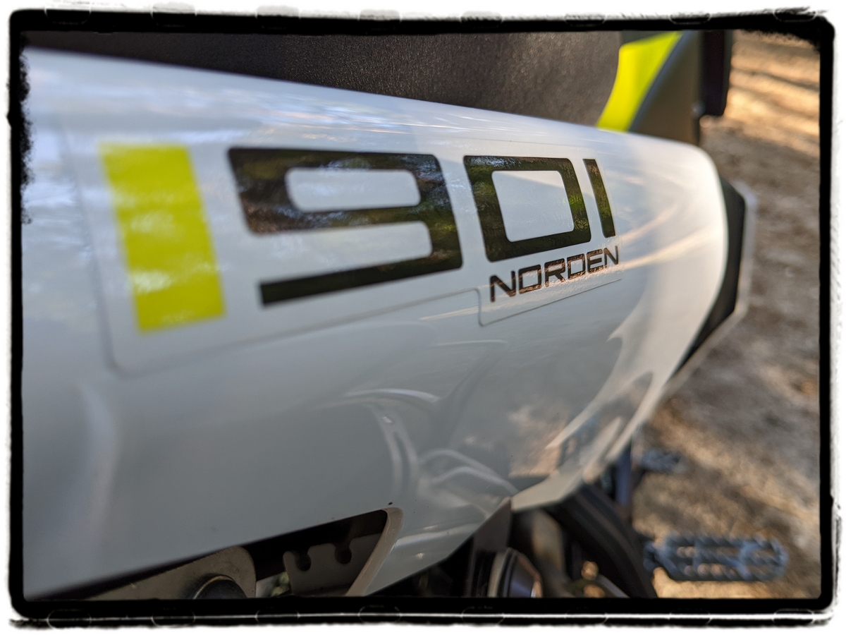 De instelbare WP Apex vering filtert opvallend gemakkelijk putten en vluchtheuvels weg zonder te wazig te worden in het bochtenwerk. Wat neusduik moet je erbij nemen, al kan je dat iets dimmen met een paar klikjes. Dat de motor best veel motorrem heeft vond ik trouwens prettig tijdens onze duizend-bochten-per-dag-ritten. En van schakellui rijden is de Norden ook niet vies.