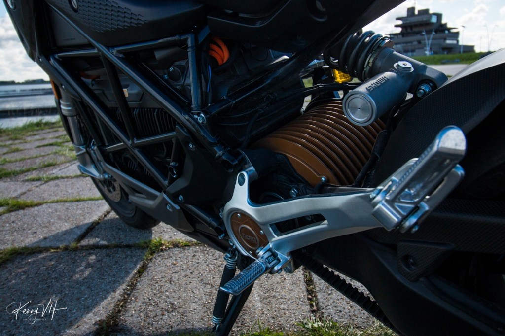 Dat harde remmen is nodig: de SR gaat in Sportstand als een speer. Het is bekend dat bij een elektromotor het koppel instant voorhanden is, en dat mocht ik aan den lijve ondervinden. De ontzagwekkende hernemingen zorgen voor een heuse adrenalinekick. Keer op keer het gas vol open draaien (ik weiger om stroom te zeggen) trekt de batterij in no time leeg, maar dikke fun is het wel.
