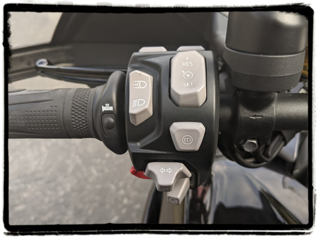 De cruise control maakt lange afstanden malen net wat lichter verteerbaar, en werkt op de Tiger foutloos. Misschien wat raar dat Triumph niet voor een adaptieve cruise control koos, maar wel voor een dodehoekradar.