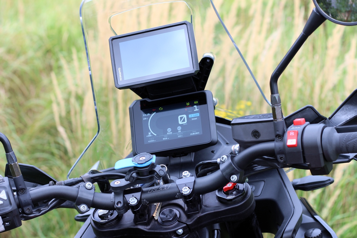 Voor de eerste bergpassen van de reis zette ik de rijmodus op Street. Leuk rijden, maar ik bleef verrassend genoeg een beetje op mijn honger zitten. Het leek wel of de KTM een beetje geknepen werd en ik miste de Ready to Race attitude, waar de motoren uit Mattighofen zo bekend voor zijn. Tot ik de Rally modus inschakelde. Deze transformeert niet enkel het dashboard, maar ook het hele gevoel dat je op de 890 krijgt.