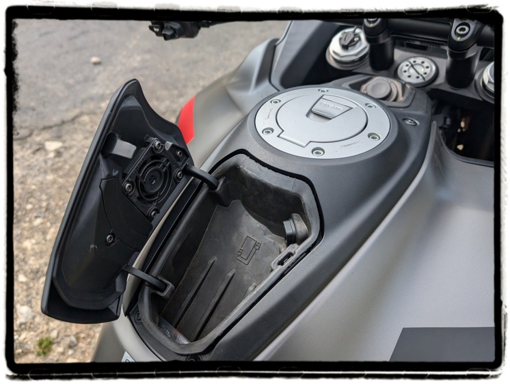Ook een iets hoger windscherm zou ik dan aanstippen, en als we dan toch bezig zijn: zet er de 30 liter-tank van de V4 S Rally op i.p.v. de standaard 22 liter-versie. Niet dat je met 22 liter nergens komt, maar de V4 blijkt ook weer niet de zuinigste. Ik heb niet eens ontzettend sportief gereden om een verbruik van 6,5 L/100 km te noteren.