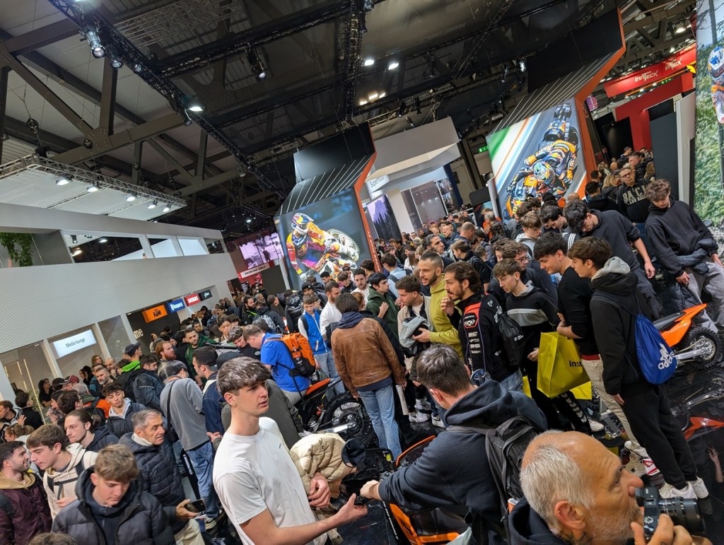 – EICMA trekt veel volk. Heel veel volk. 600.000 bezoekers verspreid over de 6 dagen dit jaar, een record. In de ochtend viel het nog mee, vanaf de middag werd het echt druk. Op de standen van BMW, KTM en zeker Ducati was het drummen geblazen.