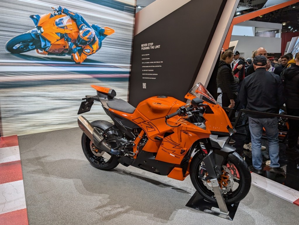Bij KTM streden verschillende modellen om hun plek in de schijnwerpers. De nieuwe 1390 Super Adventure en Super Duke GT zijn indrukwekkend, maar wel heel erg dik. Ik ben er nog niet uit of ik ze mooi vind. De 390 verraste door onaangekondigd als trio op het podium te staan (Enduro, Supermoto en Adventure R) en de mooiste uit Mattighofen – en misschien wel van heel EICMA – was de 990 RC R. Zo is er plots een volledig nieuwe categorie van dikke middenklasse sportmotoren (R9, QJ’s SRK 800 RR, …). Kunnen we alleen maar blij om zijn.