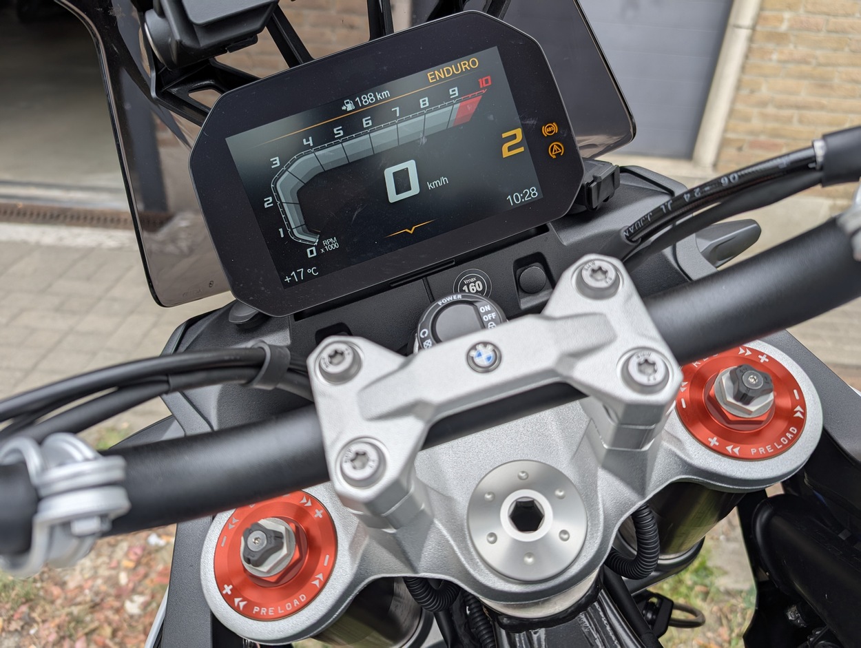 BMW zou BMW niet zijn als ook de rijmodi in een pack komen. Het Dynamic Pack biedt naast de standaard modi Rain en Road ook nog Dynamic en Enduro. Die laatste zijn de enige modi waarin ik reed en de bijhorende quickshifter wil je uiteraard ook. Beide packs zijn dus absoluut een must wil je het potentieel van deze F 900 GS volledig kunnen benutten.