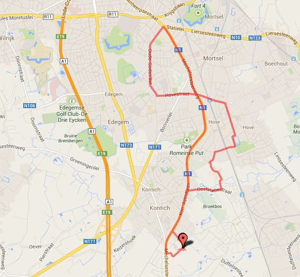 Daarna gaat het richting oefenterrein, aan de Slachthuislaan in Antwerpen. Een ritje van een kleine 10 minuutjes. Marcel voorop op een Kawasaki Versys 650, ik erachter aan. Toegegeven: toch wel een beetje spannend met zo weinig ervaring en behoorlijk druk verkeer.
