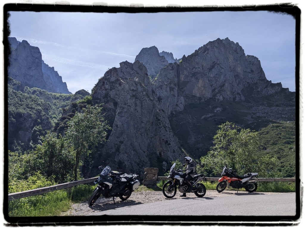 We, dat zijn Jan F op een Triumph Tiger 900 (testverslag hier), Shih op z’n KTM 890 Adventure en ikzelf op een BMW R 1300 GS (testverslag hier). Bestemming: Picos de Europa, de bergketen in Noord-Spanje, grofweg links onder Bilbao.