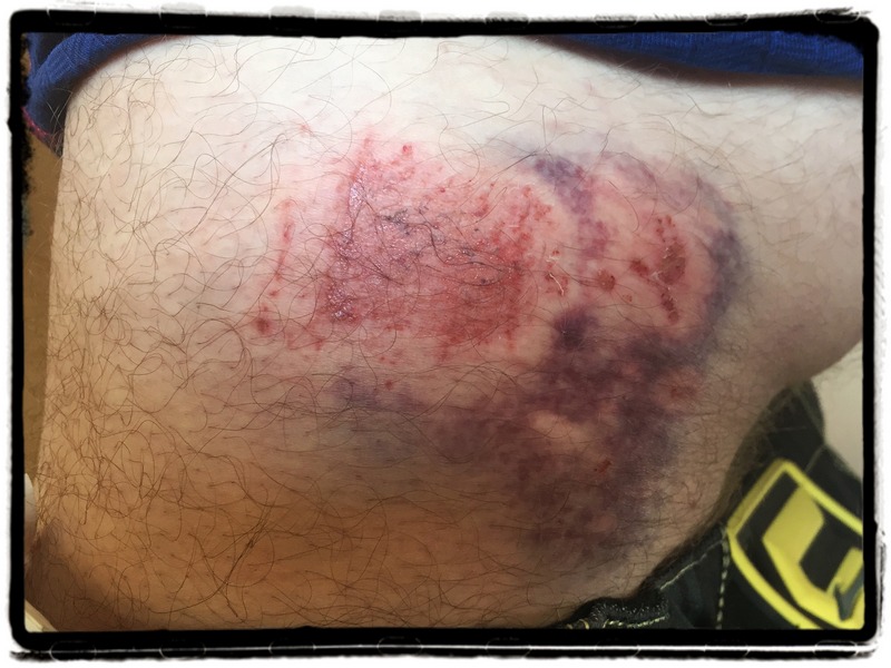 Tijdens bovengenoemde uitschuiver in de Morvan liep ik een fraaie schaafwonde op m’n heup op. Niks ernstig, maar het deed me wel beseffen dat een crossbroek nul bescherming biedt. Dus op zoek naar een protectorshort. Paar modelletjes gaan passen: de Alpinestars Comp Pro shorts, de Alpinestars Evolution shorts, de Acerbis Soft 2.0 Protector shorts, de Alpinestars MTB Bionic Protector Shorts en de O´Neal Trail Protector Shorts. Gekozen voor de Alpinestars MTB Bionic. Zat het beste. Genoeg bewegingsvrijheid, maar ook genoeg beschermde lijfoppervlakte.