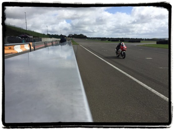 Na drie rijsessies met instructeur was het tijd voor drie sessies vrij rijden. De puzzelstukjes leken nu stilaan terug samen te vallen: gas, remmen, rijlijnen, kijktechniek … En het slechte weer, dat bleef uit. Het miezerde soms, maar echt nat werd het niet en ik kon bijna altijd vlot doorrijden zonder me te hoeven inhouden. Bovendien bleek het een erg rustige circuitdag (veel afhakers vanwege de slechte weersvooruitzichten?) zodat er minder racers op de baan waren dan anders.