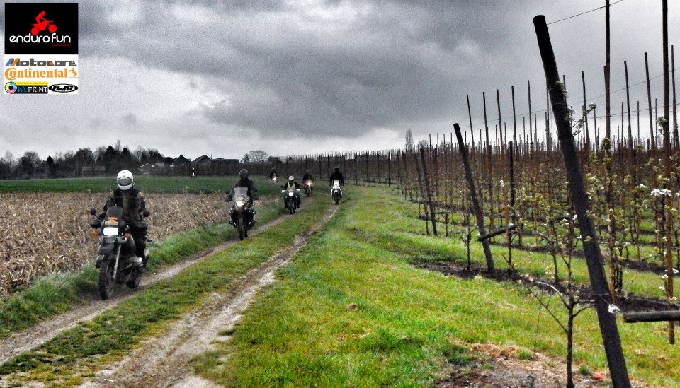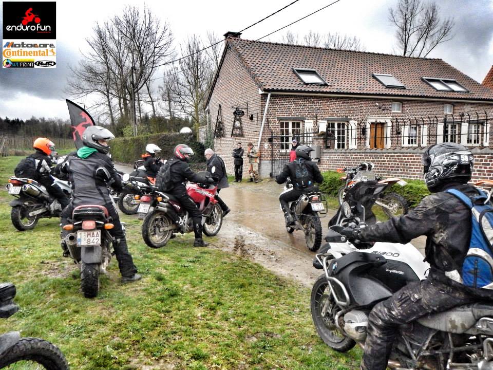 Dus ik zaterdagochtend naar Tielt-Winge, waar de rit vertrok. Ruim 70 deelnemers aan de start, die opgedeeld werden in groepjes van een zestal man, op basis van ervaring, motor- en bandentype. Ik bleek de minste ervaring van ons groepje te hebben, maar ervaren rotten zaten ook weer niet bij.