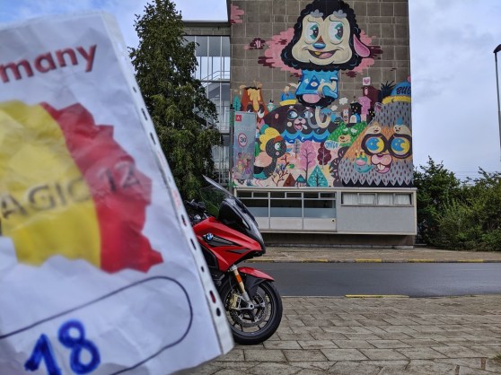 Begint het zweet je al uit te breken om hiermee een route uit te stippelen? Haal er dan maar een dweil bij, want drie dagen voor vertrek kregen we de “minimum requirements” in onze mailbox: zes groepjes van in totaal 24 locaties, waarvan je tijdens de rally minstens één locatie naar keuze per groepje moest bezoeken. Ook weer thematisch opgesplitst: Vlaanderen, Wallonië, Brussel, Nederlandstalig, Franstalig en Duitstalig. Eén groepje overslaan kostte je 5.000 strafpunten. Miste je er twee dan was je gediskwalificeerd, of DNF (did not finish) in IBA-jargon.