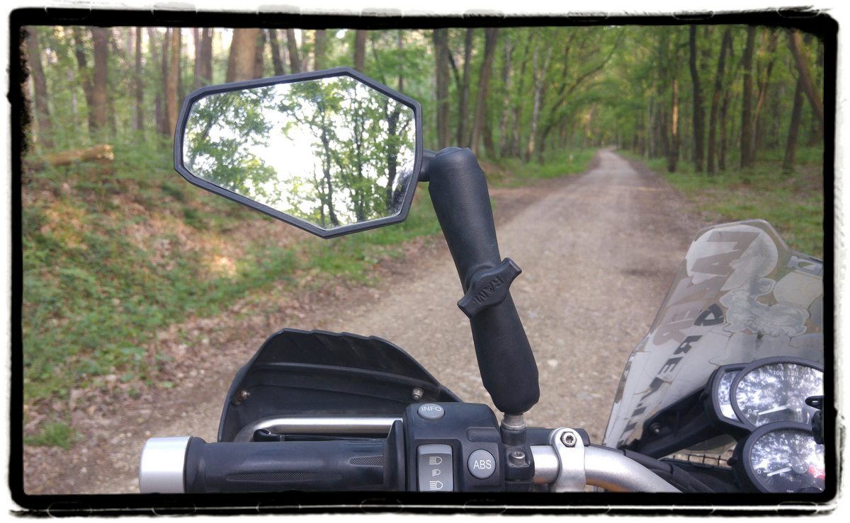 Als nieuwjaarscadeau van Allroadmoto gekregen, direct geïnstalleerd en intussen al anderhalf jaar in gebruik. De Doubletake mirrors zet je via een meegeleverde RAM-bol en RAM-arm vast. Handig als je af en toe offroad gaat en je niet bij elke valbeurt nieuwe spiegels wil steken. En ze bieden ook nog ‘s een goed zicht. Content van!