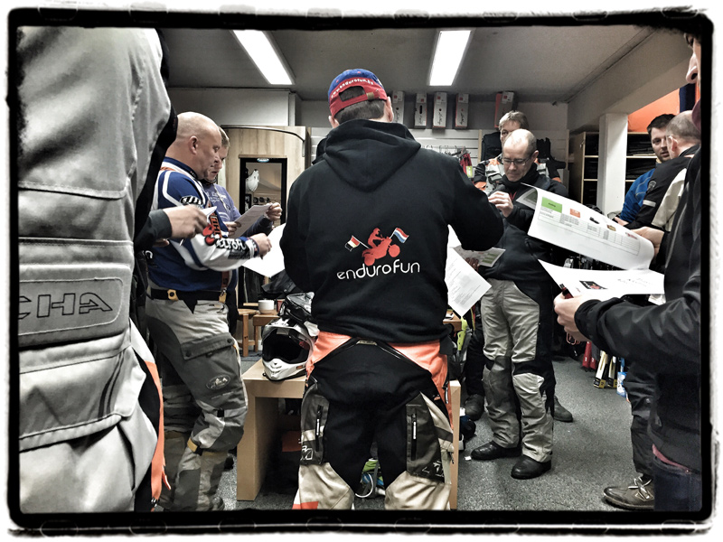 Na de Mechaniekcursus vorige maand, ging ik zaterdag de Endurofun Triocursus volgen. Ter voorbereiding op de Alpenreis in september. De naam verraadt het al, deze cursus wordt opgedeeld in drie delen. Dus een paar uurtjes – zoals de Mechaniekcursus – volstaan niet. Deze keer vullen Bart en Maja een hele dag.
