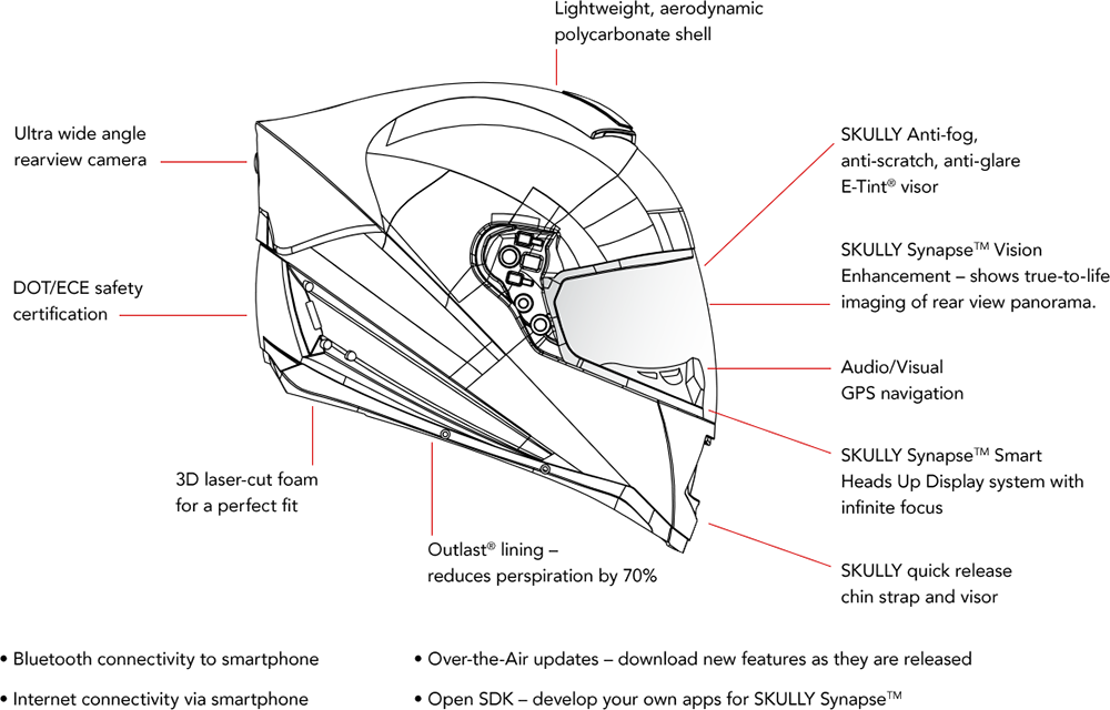 Maar er zijn kapers op de kust. Amerikanen meer bepaald. Skully Systems lanceert momenteel hun Skully AR-1, en die helm gaat nog een stapje verder dan de LiveMap.