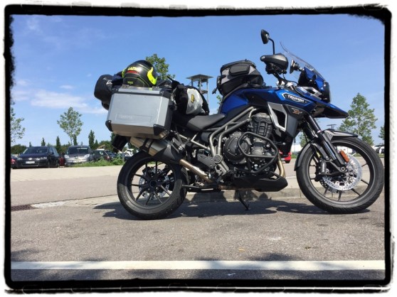’s Morgens vertrek ik aan 20 graden. Ik kan goed doorrijden, zelden druk verkeer. Rond 14u geeft het dashboard al 30 graden aan. Even dat doorwaaipak aantrekken dat ik gelukkig meeheb. In totaal vier korte stops (tanken, snelle hap, wc en go). En de Tiger Explorer, die doet dat goed. Verder weinig te vertellen over deze autostrade-etappe.