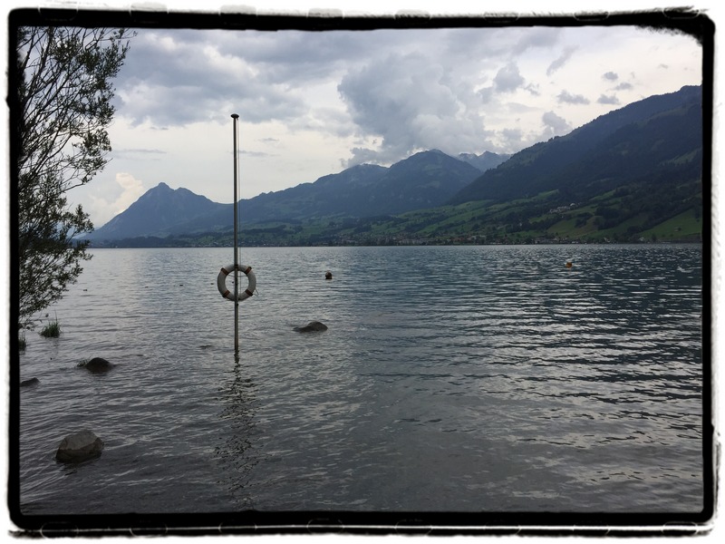 De camping dan. Camping International Giswil ligt aan het Sarnermeer. Even na vieren meld ik me er aan. Je kan proberen een plekje met zicht op het meer te bemachtigen maar dan moet je er de stenige ondergrond bijnemen. De plaatsen met een minder fotogeniek uitzicht hebben meestal een grasondergrond. Het sanitair is zeer zuiver. Van het aanbod in het winkeltje ga je je buikje moeilijk rond krijgen dus zorg dat je geshopt hebt. Wil je niet zelf de kok uithangen, dan kan je in het cafetaria warm eten. Prijs voor een nacht voor 1 persoon, tent en motor: 24,50 CHF. Douchen aan 0,50 CHF per drie minuten, tenzij je van koude douches houdt, die zijn gratis. Gratis plonsje in het meer behoort ook tot de mogelijkheden. De wifi is gratis en traag, te vinden in de buurt van het hoofdgebouw. Mobiel internet? Zwitserland behoort niet tot de EU, dus Proximus sms’t me: “Surfen meneer? Kost 14,52 euro per MB.” Slik.