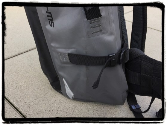 De SW-Motech Baracuda is vervaardigd uit waterafstotend plastic (tarpaulin). Met twee verstelbare gespen op de zijkant kan je de rugzak compact maken als je ‘m niet vol stopt.