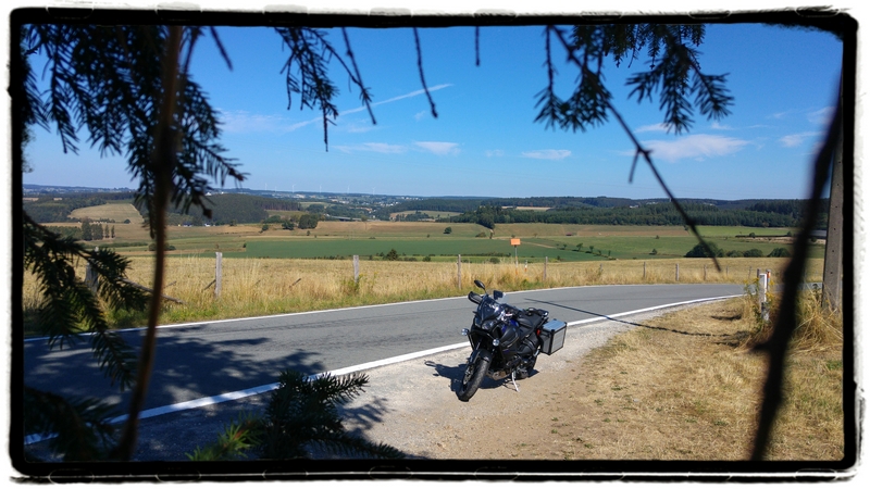 Voor de heenreis mocht de pas gekochte TomTom meteen aan de slag. Niks route vooraf uitstippelen. Vanuit Limburg de autostrade tot voorbij Luik en dan switchen naar kronkelwegen richting Vogezen. De gps leidde me via de Hoge Venen de Eiffel in. De temperatuur was nog dragelijk, geen kat op de baan, heerlijk rijden zo.